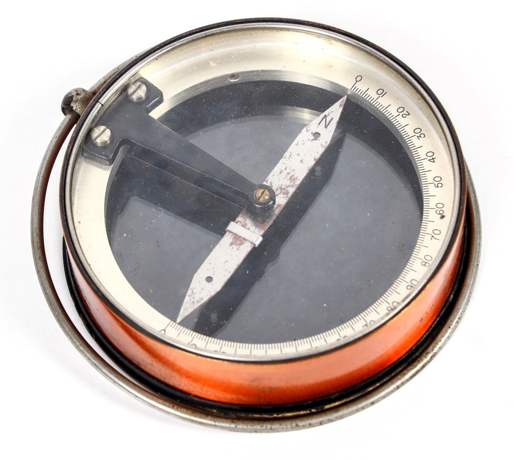 This is a Keuffel & Esser Co. miner's dip compass with a bronze tone lacquered finish. S/ N 67618 in very nice condition. 4 in. diameter. rom the Popovich collection. Please see photo for details.