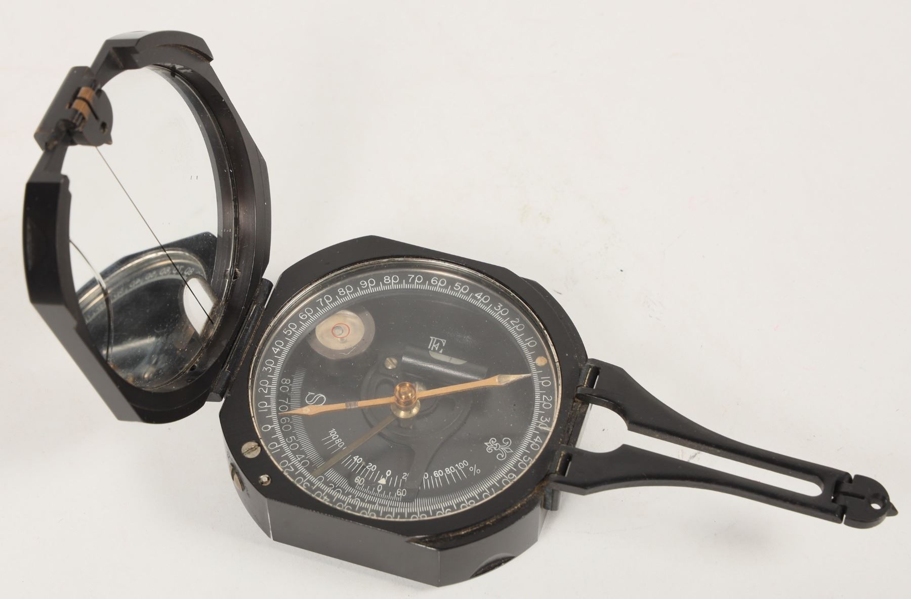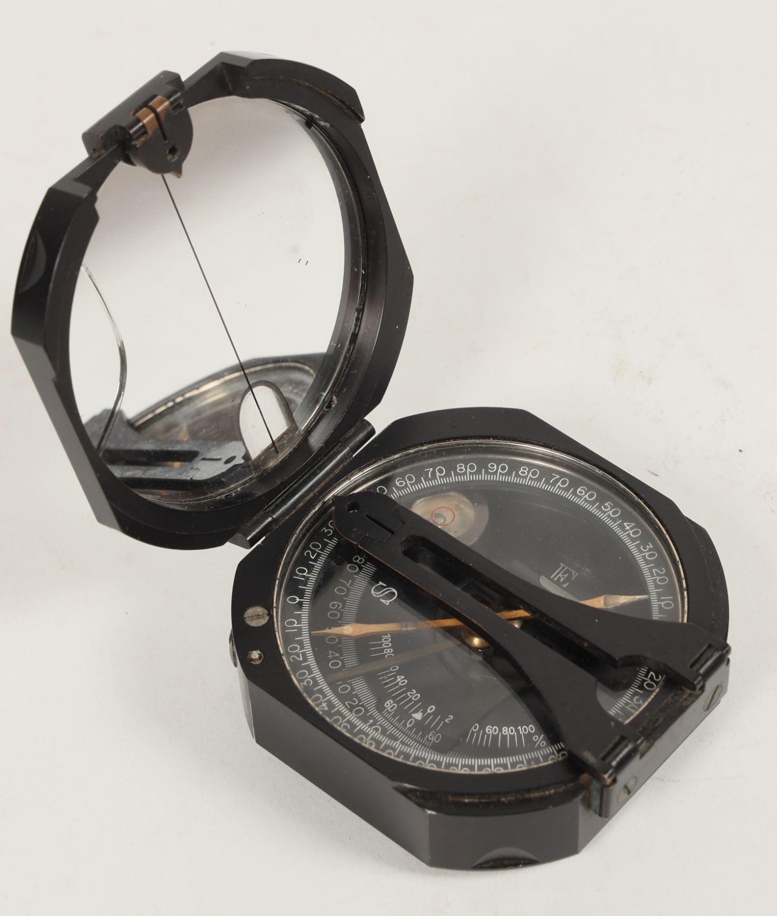 This is a Keuffel & Esser Natural Sines compass S/N 107215 in a jeweled movement with case. In very good condition, cracked mirror. From the Popovich collection. Please see photo for details.