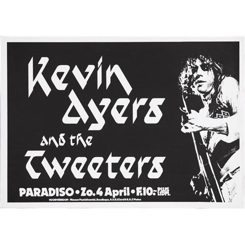 <B>Kevin Ayers Paradiso Concert Poster (1982)</B></I> Former Soft Machine guitarist and singer Kevin Ayers recorded a string of solo albums in the 1970s that sold well in England, and are just beginning to be noticed outside a small cult of American fans, thanks to recent CD reissues. He maintains a large following in the UK and Europe, and continues to tour. Here's an attractive vintage black and white concert poster for a show at Amsterdam's Paradiso, measuring 24" x 17", in VG+ condition.