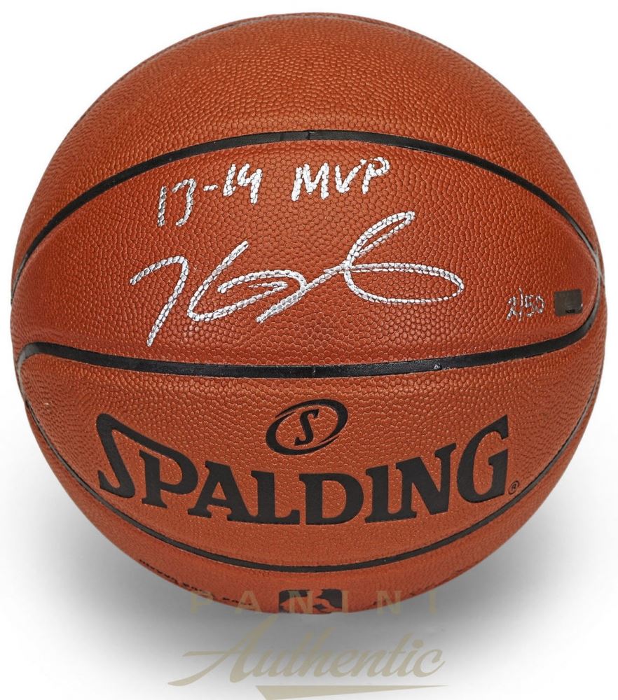 Kevin Durant can now add NBA Most Valuable Player to his laundry list of awards and accomplishments. Durant's 2013-14 NBA Season was like few others in league history. He averaged 32 points, 7 rebounds and 5 assists, becoming the first player to win both the scoring title and the MVP award in the same season since Allen Iverson did it in 2000-01. He scored 40 points or more 14 times and set an NBA record by scoring at least 25 points in 41 consecutive games. Durant's season was nothing short of amazing. He provided value through leadership, historic consistency, sheer ability and his quest to become the league's best will be a storyline for years to come. This Kevin Durant autographed basketball includes a Panini Authentic certificate of authenticity with a unique hologram number that corresponds to the hologram on the actual collectible. These holograms protect the integrity of the product and serve to guarantee the authenticity of the memorabilia.