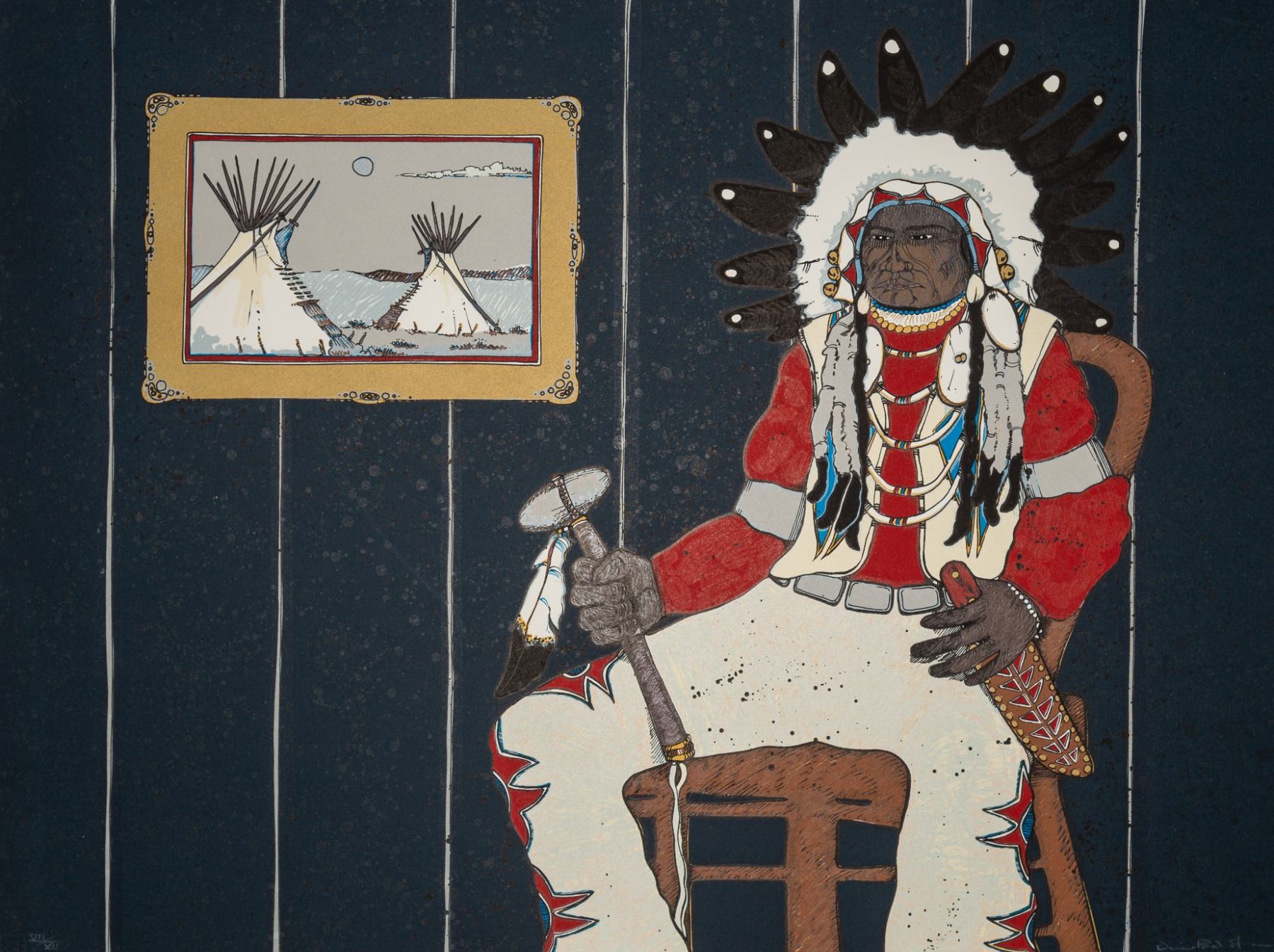 Lithograph in color on paper, editioned VII/VII lower left, signed in white pencil lower right: "Kevin Red Star"
