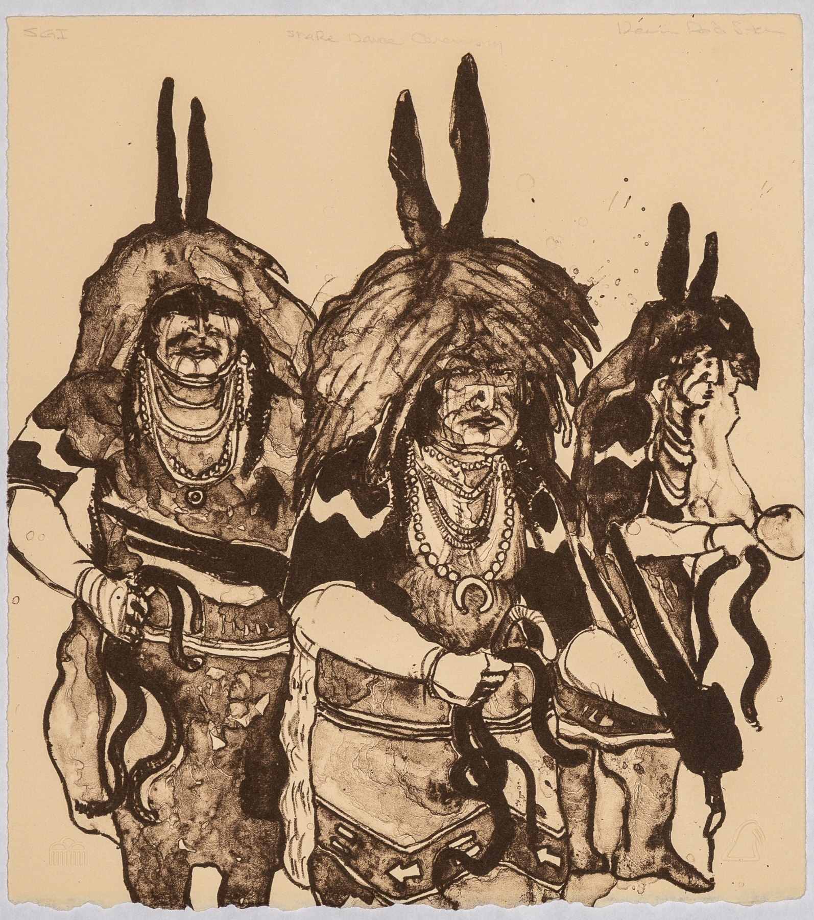 Kevin Red Star (Crow, b. 1943) Snake Dance Ceremony, serigraph, editioned upper left, titled upper center: Old Raven signed upper right: Kevin Red Star