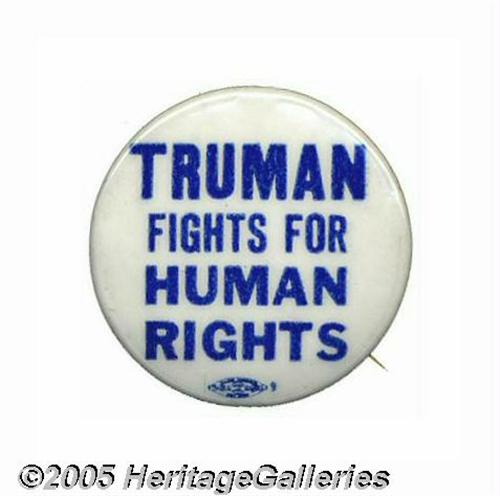 <B>Key 7/8" Harry Truman Button with Great Slogan</B></I> A companion piece to the "Civil Rights" varieties, this variety is extremely hard to find in this choice, "minty" state; most examples have spotting. Lot:263