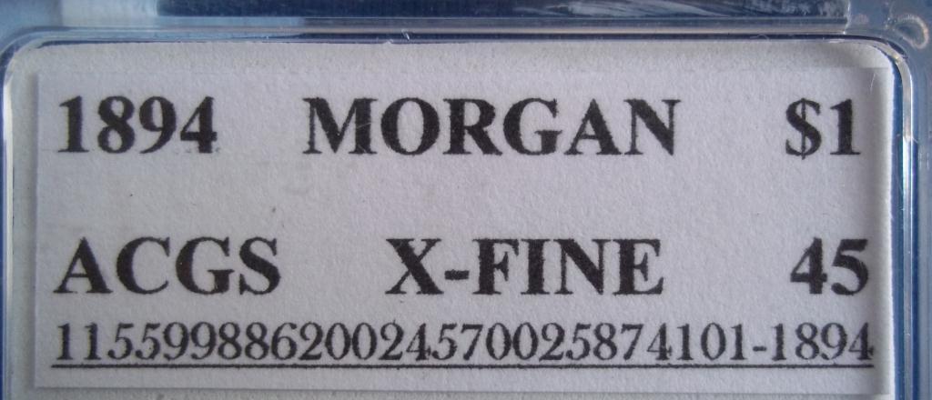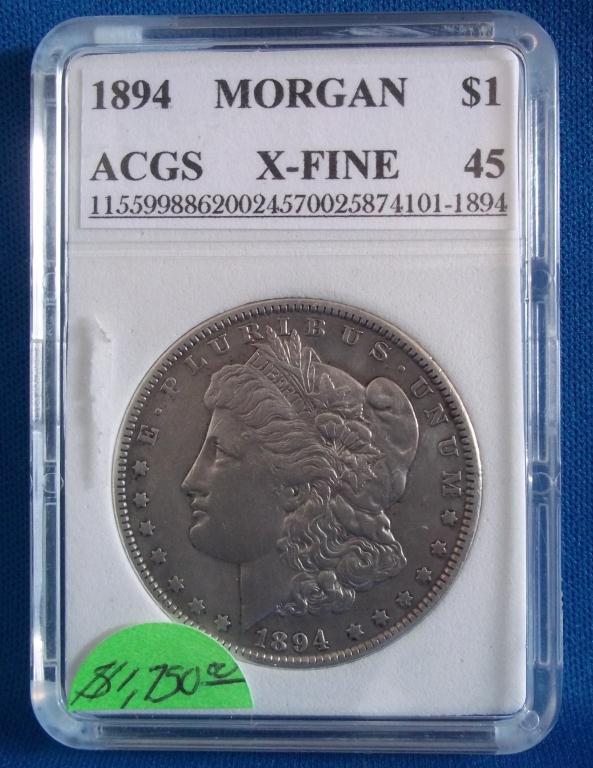 1894-P Morgan Silver Dollar in ACGS Grading Slab, graded Extremely Fine-45. EXTREMELY LOW MINTAGE--ONLY 110,972 EVER MINTED!!!!