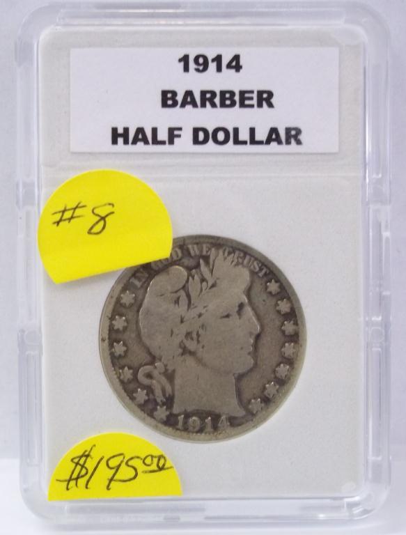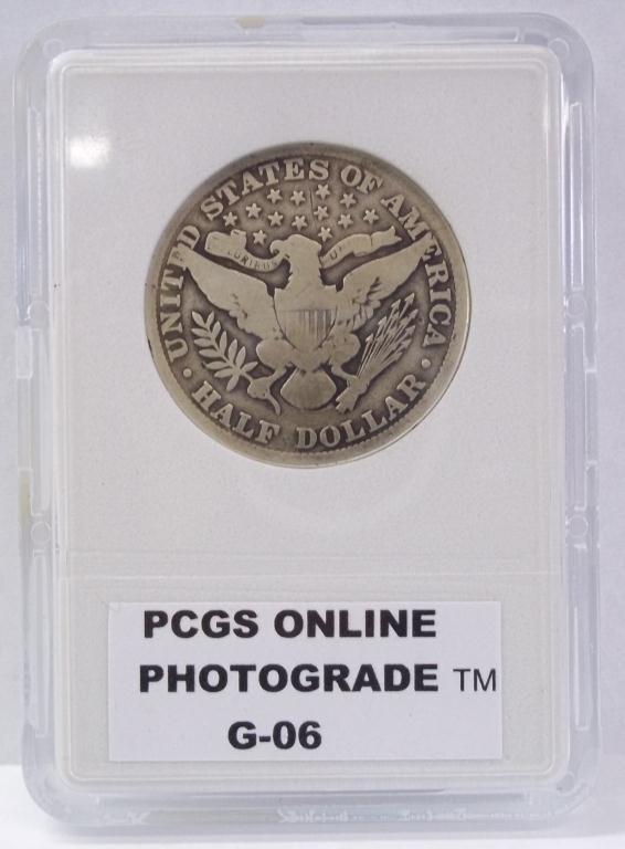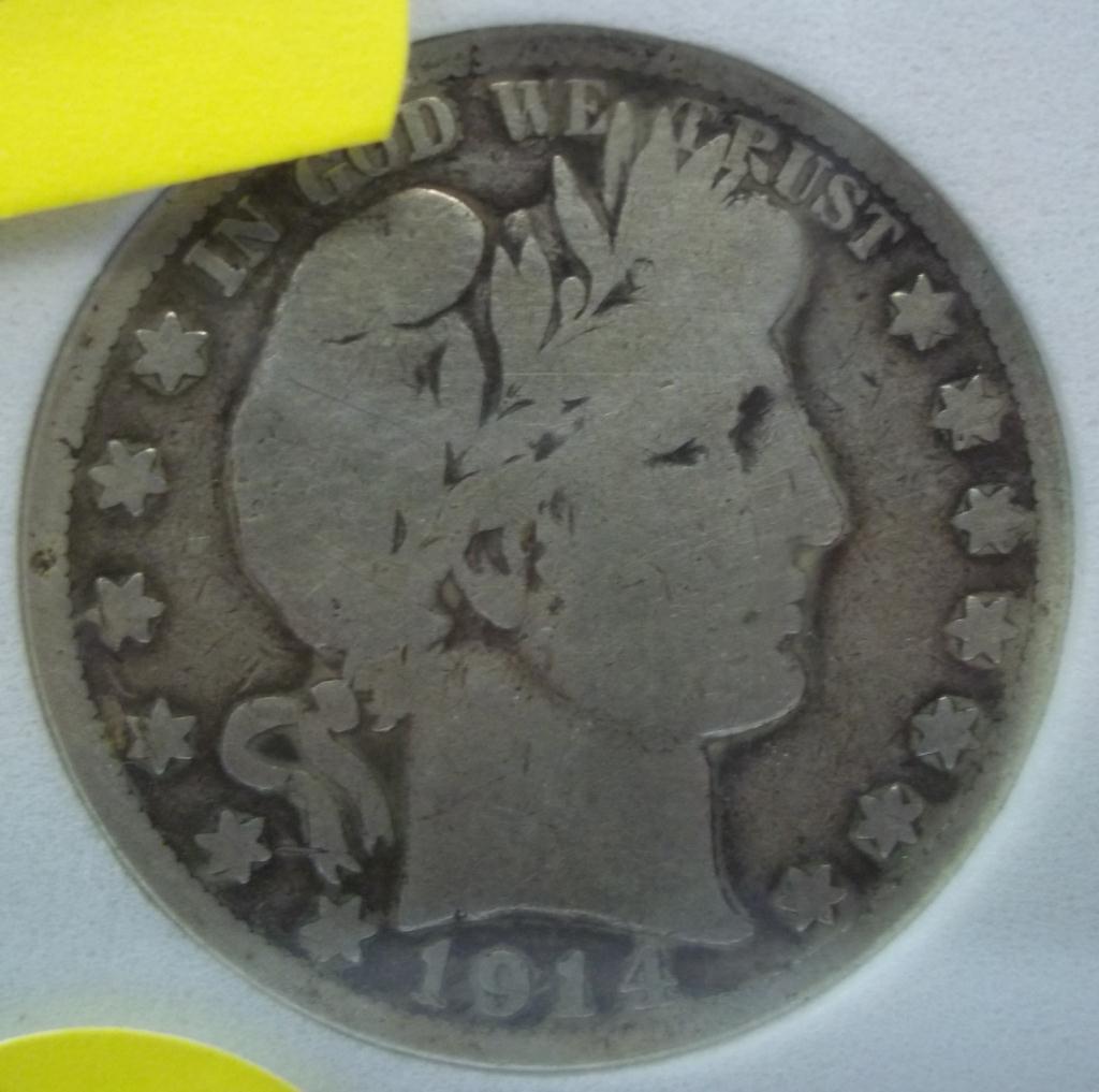 Key Date 1914 Philadelphia mint Barber Half Dollar, in PCGS grading slab, graded GOOD-06. Lowest mintage coin in The Series- ONLY 124,610minted!
