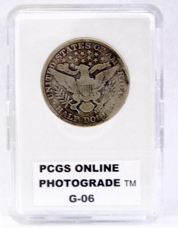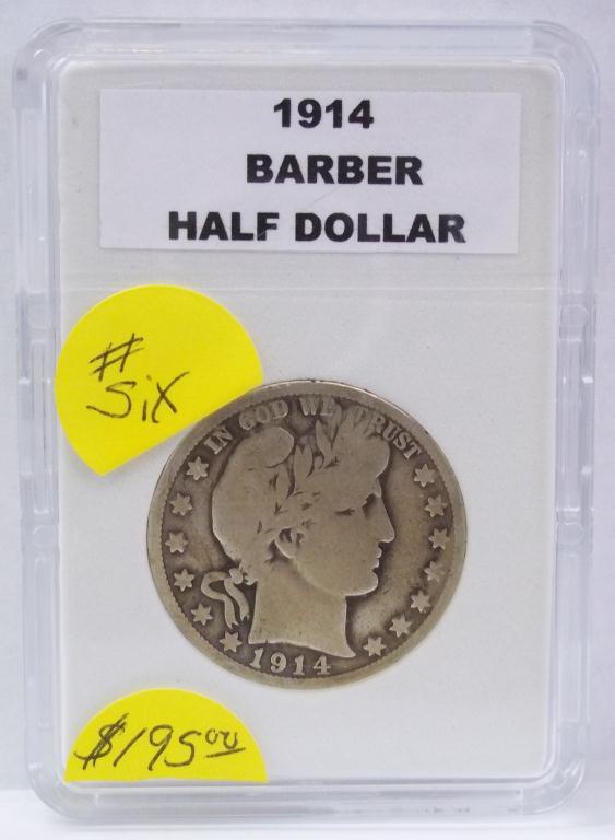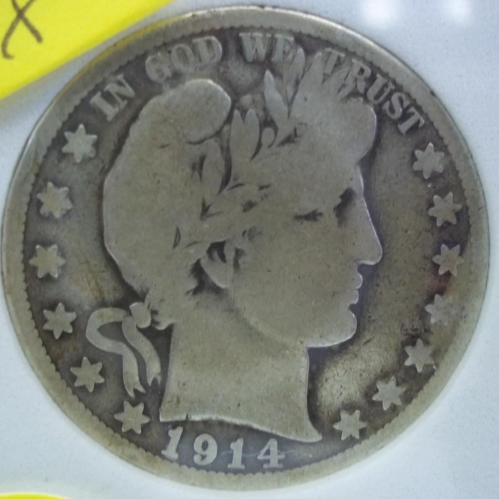Key Date 1914 Philadelphia mint Barber Half Dollar, in PCGS grading slab, graded GOOD-06. Lowest mintage coin in The Series- ONLY 124,610minted!