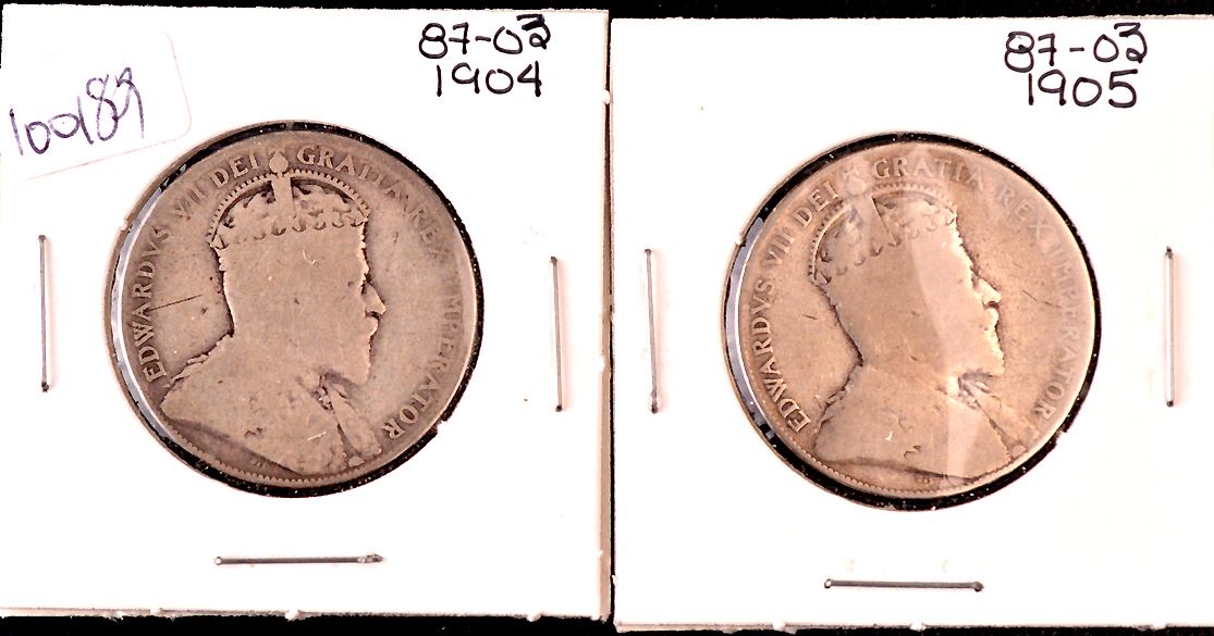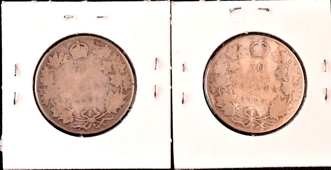 Fifty Cents, 1904, AG; 1905, Good; A key date pair.
