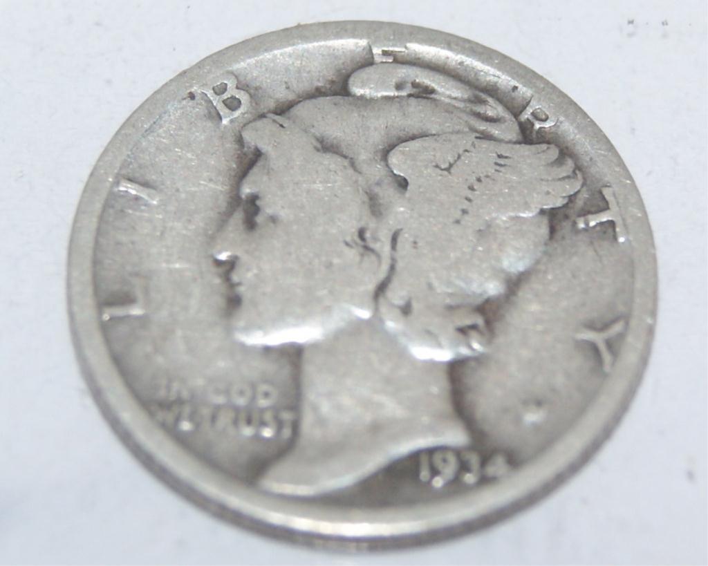 Key Date, Rare 1934 Mercury Dime, XF