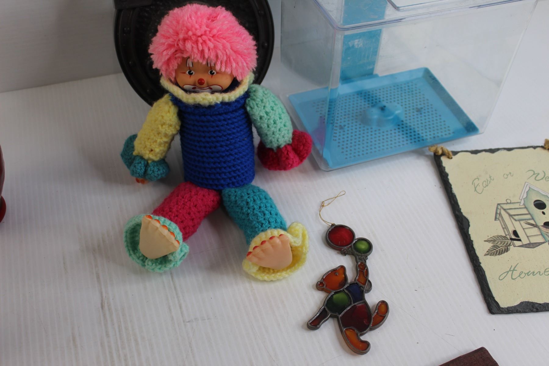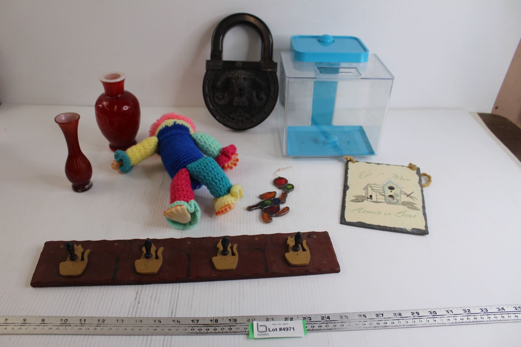 Key Holder, Clown Toy, (2) Vases, Misc.