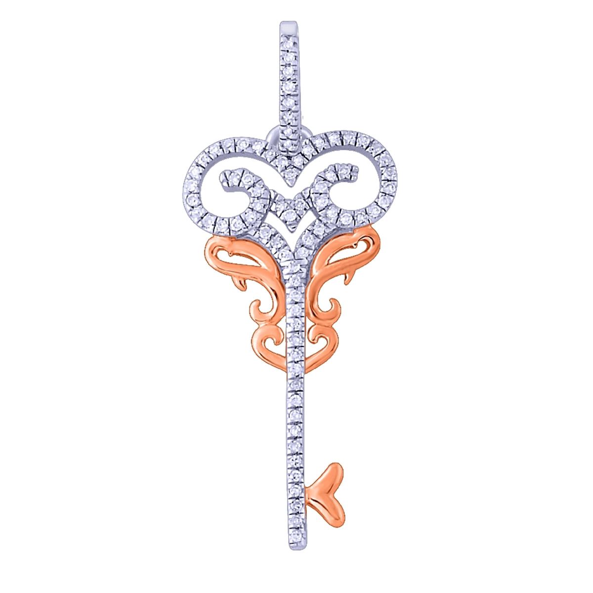 Key Shaped Diamond Pendant in 14K Two Tone Gold | 436760 Grams, featuring 0.1 ct 75 ct ct 14 ct