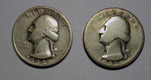 Key date Washington quarters 1932D AG and 1932S VG