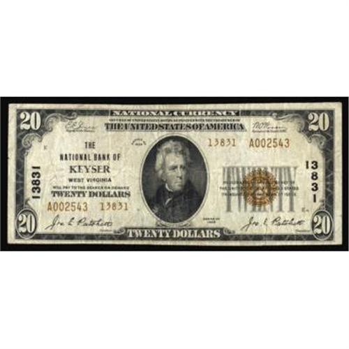 Keyser, WV. $20 1929 Ty. 2. The NB of Keyser. Charter #13831. Fine+.