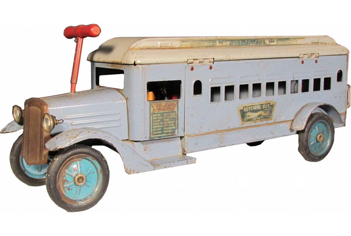Rare 1930's Keystone Pressed Steel Chevy Coast to Coast Bus Toy. The best we have seen. Excellent all original condition. 33 inches.