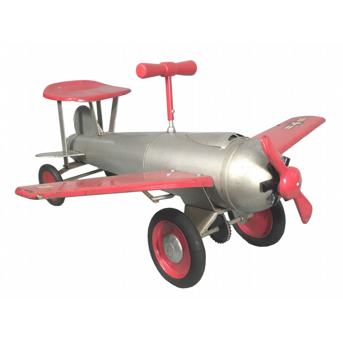 Keystone No. 293 Ride 'Em Fighter Plane. Silver/Red pressed steel. Very good original condition. 26 inches long X 27 1/2 inch wingspan.