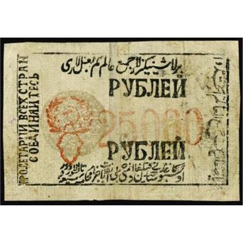 <style type="text/css"> body, td, th { font-family: Arial, Helvetica, sans-serif; font-size: 12px; color: #482424; margin: 0px; padding: 0px; } #header { background-image: url(http://www.bowersandmerena.com/ebay/images/template_v3_01.gif); clear: both; background-color: #590303; border-top-width: 2px; border-top-style: solid; border-top-color: #B38C4F; } #header #header_wrapper { height: 75px; clear: both; width: 800px; margin-right: auto; margin-left: auto; background-image: url(http://www.bowersandmerena.com/ebay/images/template_v3_03.gif); background-repeat: no-repeat; background-position: right; color: #F3EDCC; } #header #header_wrapper #header_logo { float: left; height: 75px; width: 444px; background-image: url(http://www.bowersandmerena.com/ebay/images/template_v3_02.gif); background-repeat: no-repeat; font-size: 10px; text-transform: capitalize; color: #B38C4F; } #header #header_wrapper #header_right { float: left; height: 75px; width: 356px; text-align: right; } #header #header_wrapper #header_right #headerLoginBtn { margin-bottom: 30px; } #header #header_wrapper #header_right input#txtSearch { color: #B49056; border: 1px solid #B49056; width: 175px; padding-top: 3px; padding-right: 3px; padding-bottom: 4px; padding-left: 3px; } #nav { height: 37px; background-image: url(http://www.bowersandmerena.com/ebay/images/template_v3_05.gif); clear: both; } #nav #nav_wrapper { height: 35px; width: 800px; margin-right: auto; margin-left: auto; border-left-width: 1px; border-left-style: solid; border-left-color: #B38C4F; } #nav #nav_wrapper a { padding-right: 15px; padding-left: 15px; border-right-width: 1px; border-right-style: solid; border-right-color: #B38C4F; height: 25px; padding-top: 10px; display: block; float: left; text-decoration: none; font-weight: bold; color: #5D0303; } #nav #nav_wrapper a:hover { color: #B38C4F; } #nav #nav_wrapper #search { float: right; padding-top: 7px; } #nav #nav_wrapper #search #txtSearch { font-family: Arial, Helvetica, sans-serif; font-size: 10px; text-transform: uppercase; color: #D2AE75; border: 1px solid #B38C4F; padding: 3px; } #content_bgd { background-image: url(http://www.bowersandmerena.com/ebay/images/template_v3_09.gif); background-repeat: repeat-y; background-position: center; padding-top: 15px; padding-bottom: 15px; background-color: #FBFBDB; } #content_wrapper { clear: both; height: auto; width: 800px; margin-right: auto; margin-left: auto; } .LotDetailWhite { line-height:normal; font-size:13px; font-family: arial,helvetica,sans-serif; color: White; font-weight: bold; } .LotDetailInformation { line-height:normal; font-size: 13px; font-family: arial,helvetica,sans-serif; } .LotDetailMessage { line-height:normal; font-size: 13px; font-family: arial,helvetica,sans-serif; color: red; } } tr.HeaderAuctionTitle td { color: #000000; font-weight: bold; padding: 2px; background-image: url(http://www.bowersandmerena.com/ebay/images/template_v3_05.gif); background-repeat: repeat-x; border-bottom-width: 1px; border-bottom-style: solid; border-bottom-color: #B38C4F; } table.AuctionSummary a, table.AuctionSummary a:link, table.AuctionSummary a:visited { color: #0000FF; text-decoration: none; } } td.tableHeaderLeft { border-left-width: 1px; border-left-style: solid; border-left-color: #B38C4F; } td.tableHeaderRight { border-right-width: 1px; border-right-style: solid; border-right-color: #B38C4F; } td.tableCellMiddle { border-left-width: 1px; border-left-style: solid; border-left-color: #B38C4F; border-right-width: 1px; border-right-style: solid; border-right-color: #B38C4F; padding: 5px; } tr.footer td { border-top-width: 1px; border-top-style: solid; border-top-color: #B38C4F; } </style> </head> <body> <div id="header"> <div id="header_wrapper"> <div id="header_logo"> </div> <div id="header_right"> </div> </div> </div> <div id="nav"> <div id="nav_wrapper"> <a href="http://www.bowersandmerena.com">Our eBayLive Auctions</a> <a href="#PaymentInfo">Payment Information</a> <a href="#ShippingInfo">Shipping Information</a> <a href="#About">About Bowers and Merena</a> </div> </div> <div id="content_bgd"> <div id="content_wrapper"> <table width="100%" border="0" cellpadding="5" cellspacing="0" class="AuctionSummary"> <tbody> <tr class="HeaderAuctionTitle" style="height: 25px;"> <td align="left" class="tableHeaderLeft" > </td> <td align="center" class="tableHeaderRight"> <span style="font-size: large;">Lot #2241. Russian Central Asia. Khorezmian Peoples Soviet Republic, 1921 Fourth Issue.</span> </td> </tr> <tr> <td colspan="3" class="tableCellMiddle"> Lot of 2 notes. 1921. 25,000 Rubles, P-S1099, XF+ condition. Another scarce high grade example.