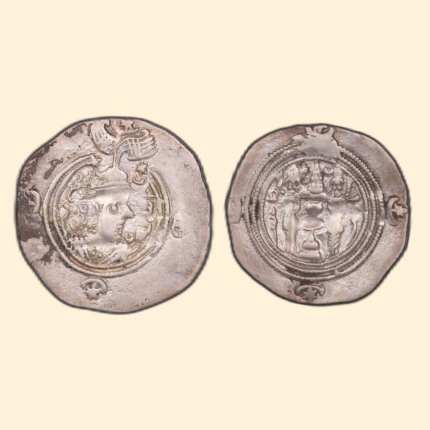 Khusro I (Anushiravan) (531-579 CE) Sasanian Silver Drachm 4.17 g Obverse :