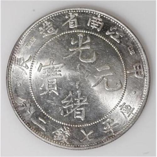 <B>Kiangnan Dollar CD 1904, </B></I> KM-Y145a.13, variety with dots on both right and left under the Chinese characters, lustrous and brilliant UNC with light abrasions.<BR><BR><b>Shipping:</b> Coins & Currency (<a target="_blank" href="http://www.heritageauctions.com/common/shipping.php">view shipping information</a>