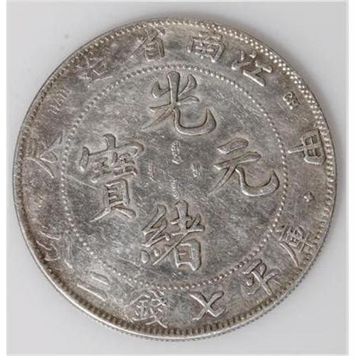 <B>Kiangnan Dollar CD 1904, </B></I> KMY145a.15, variety with 4 point rosettes under Chinese characters, lightly cleaned XF. Very rare. <BR><BR><b>Shipping:</b> Coins & Currency (<a target="_blank" href="http://www.heritageauctions.com/common/shipping.php">view shipping information</a>