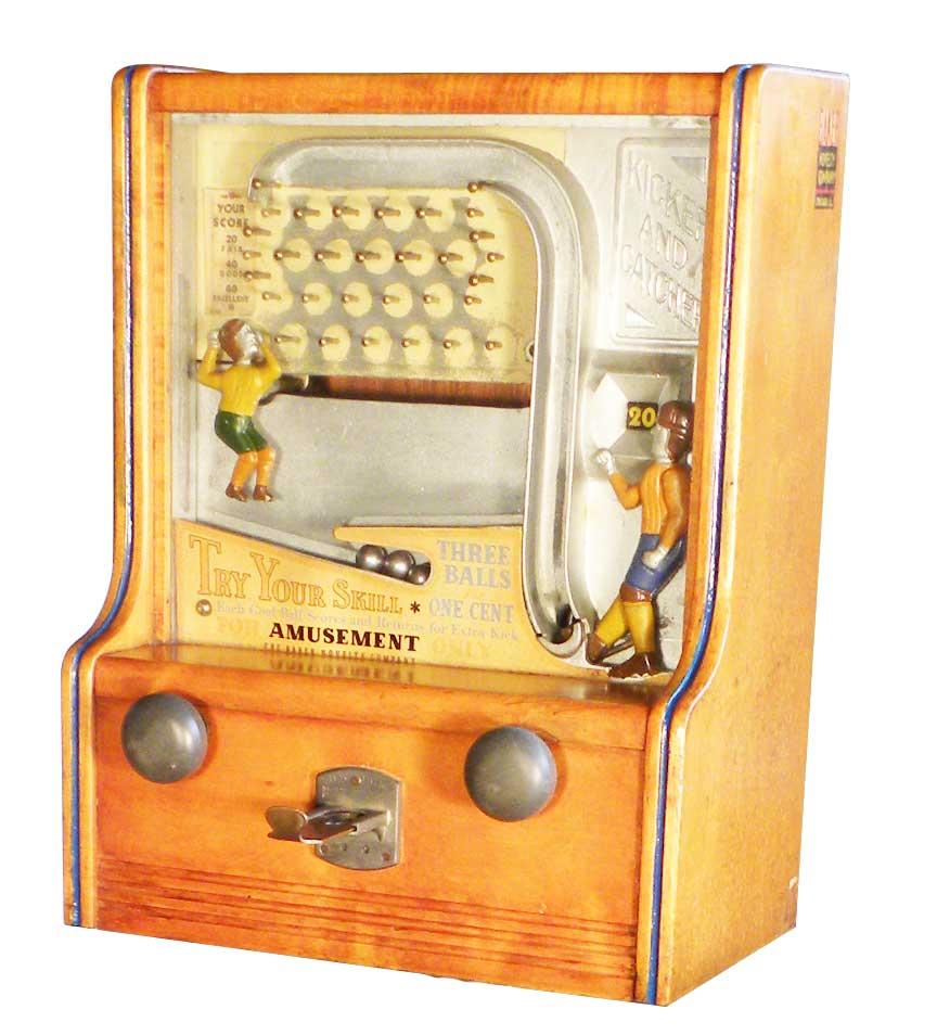 Kicker-Katcher Coin Op Machine. Baker Novelty Co. Chicago. Comes with Key. Excellent original condition. 14 X 49 X 8 inches.