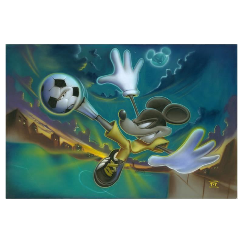 "Kickin' It" is a limited edition giclee on canvas, numbered and hand signed by Noah. This piece is licensed by Disney Fine Art. This piece has a 2" border and may be gallery wrapped or framed based on preference. Includes Certificate of Authenticity! Measures approx. 18" x 12" (image). Please allow 5 additional business for items that include canvas stretch or framing.
