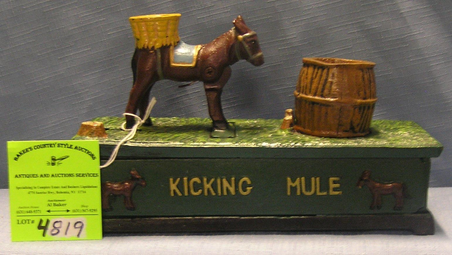 Vintage all hand painted cast iron Kicking Mule mechanical bank circa 1970’s $350.00-$375.00