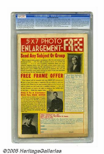50. Auctioneer offers no opinion as to the validity of a grade assigned by any third-party grading service. Since we cannot examine C.G.A. encapsulated notes or Comics Guaranty Corporation (CGC) encapsulated comics, they are sold "as is" without our grading opinion, and may not be returned for any reason. Auctioneer shall not be liable for any patent or latent defect or controversy pertaining to or arising from any encapsulated collectible. In any such instance, purchaser's remedy, if any, shall be solely against the certification service certifying the collectible.