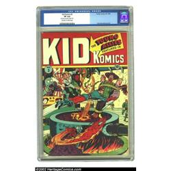 Kid Komics #3 (Timely, 1943) CGC VF 8.0 Off-white to white pages. After the first issue of the title, the Young Allies became the main feature of this Timely wartime title. Alex Schomburg's cover handiwork shows smartly on this extremely bright copy, currently residing in third place among the highest graded so far by CGC of issue #3. Overstreet 2002 VF 8.0 value = $852. Important notice: We expect to be auctioning lots at the rate of 200-250 per hour. Sometimes eBay Premier live bid software cannot keep up with that pace, so we strongly recommend that you place a realistic proxy bid now as insurance to avoid disappointment. Also please note that all Heritage/CAA lots purchased through eBay Premier carry a 20% Buyer's Premium. Please make sure you read the Terms and Conditions.
