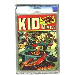 Kid Komics #3 (Timely, 1943) CGC VF/NM 9.0 Off-white to white pages. This cover certainly has all the thematic elements of a cover by Alex Schomburg, and both Overstreet and CGC credit Schomburg with the art. But is it really a Schomburg cover? Gerber's The Photo-Journal Guide to Comic Books does not credit Schomburg, and the Grand Comic Book Database Project credits Al Avison (pencils) and Syd Shores (inks) with the cover art. A close look at the cover reveal faces, hands, and other details that do not have the "look" of Schomburg's work. And unlike most Schomburg covers, this one does not bear his signature.... We suspect that CGC and Overstreet are wrong on this one. (But it's still a beautiful piece of cover art!) There are currently only two copies of this issue that have been graded higher by CGC. Overstreet 2003 VF/NM 9.0 value = $1,235; NM 9.4 value = $1,600. Important notice: Heritage usually auctions material at the rate of 200-250 lots per hour. On some occasions eBay Live bid software or the Internet may not be able to keep up with the pace of the auction. We recommend placing a realistic absentee bid now as insurance to avoid disappointment. Occasionally the auctioneer may eliminate or reject an eBay Live bid, and the auctioneer may also reopen a lot after the close of the eBay live bidding (usually because we missed an audience bid), and may reject your bid even if it shows you as the winning bidder. By bidding via eBay Live, you agree that Heritage may award the lot to another bidder at its sole discretion under the circumstances described above or any other reasonable circumstances. Since eBay bids are not shown to us until we open the lot on the floor, we treat those bids just like floor bids. In most cases the floor responds before the eBay bid is presented to us, due to Internet lag time, so for consistency we have made it a policy that floor bids are always considered first over tie eBay live bids. Also please note that all Heritage lots purchased through eBay Live carry a 20% Buyer's Premium. Please make sure you read the Terms and Conditions before you bid.