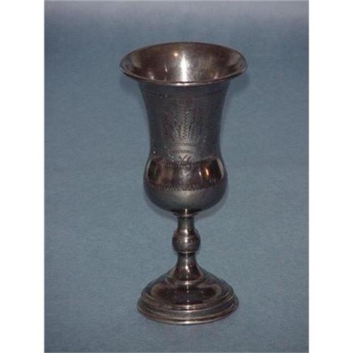 A sterling silver Kiddush cup, 5 1/8" tall. Marked sterling, of good weight and free of dents it will polish up beautifully. Engraved with the Star of David.