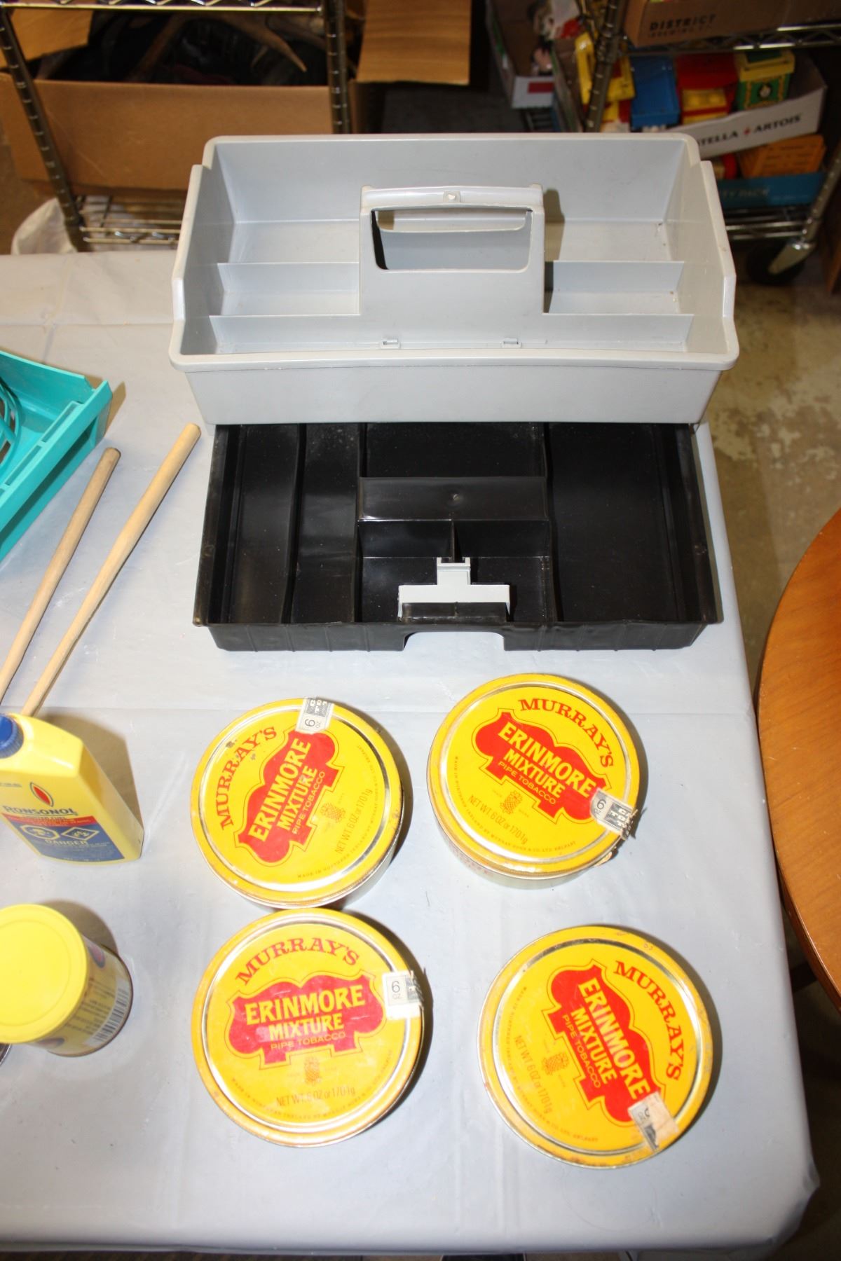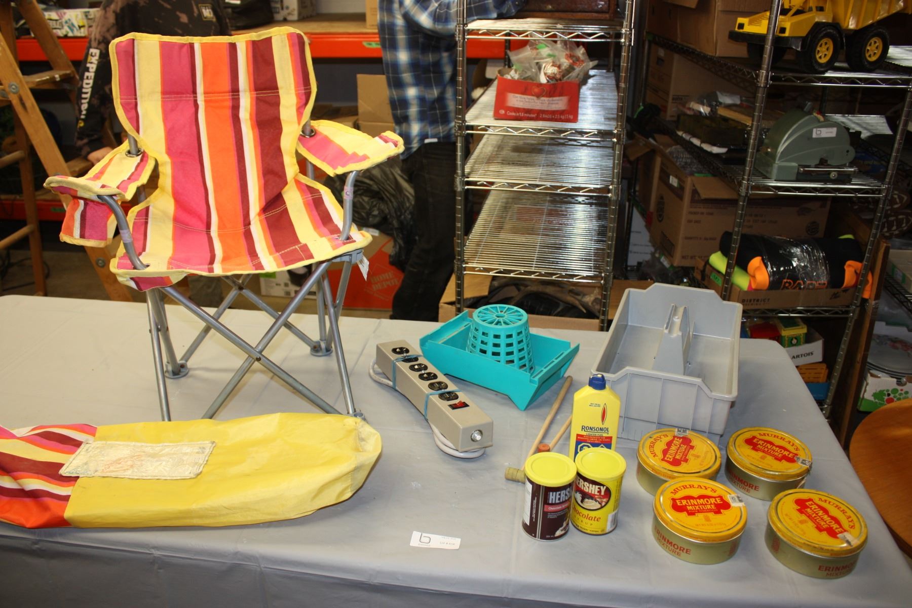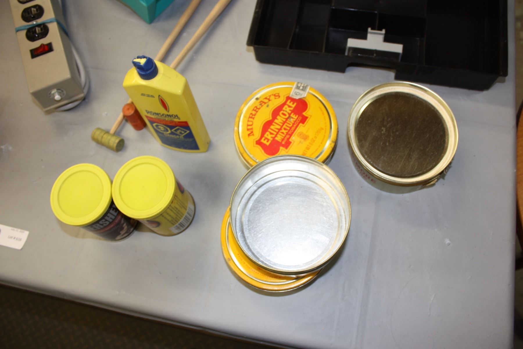 Kids Folding Chair and Case, Pipe Tobacco Tins, Tool Tray and Misc