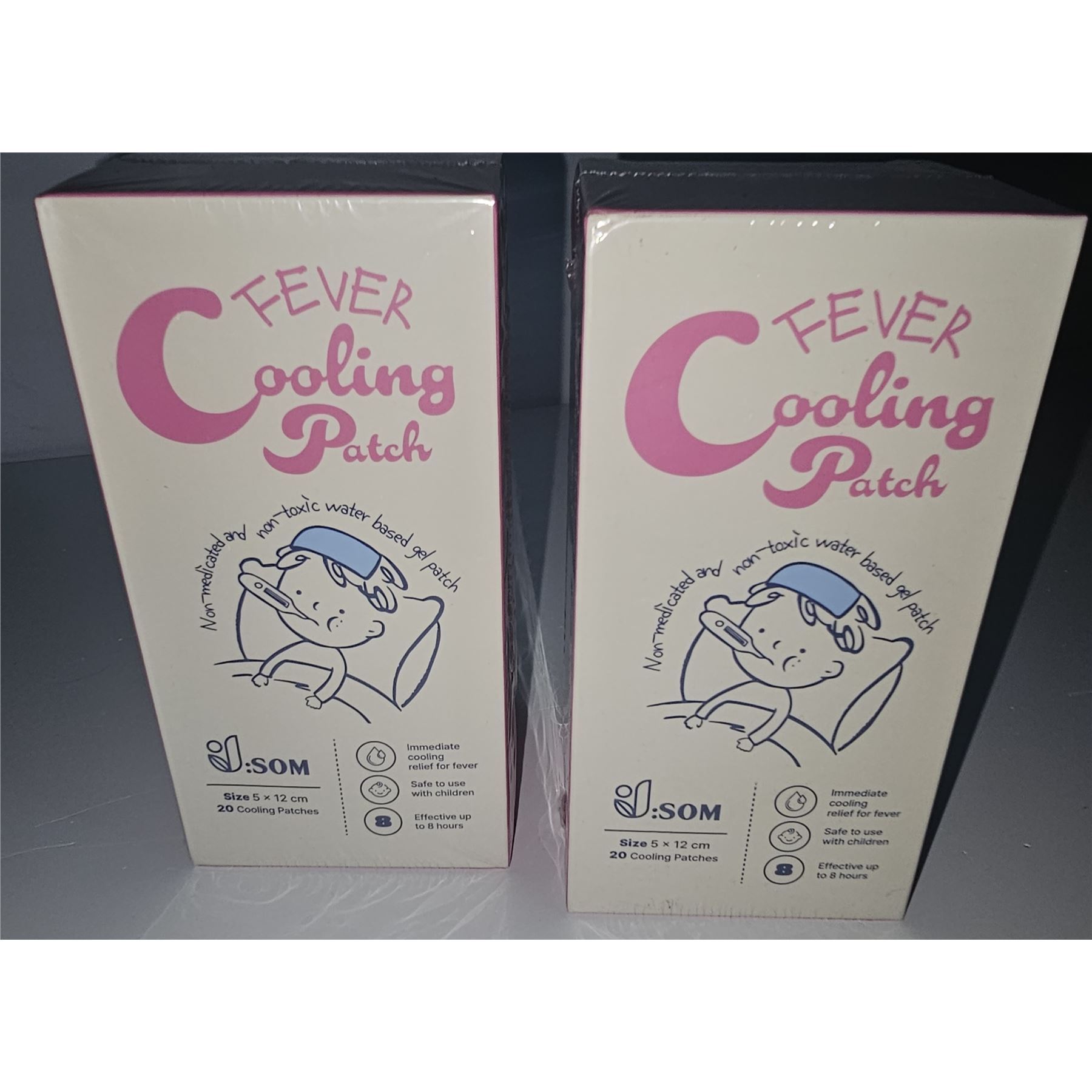 20 non-toxic water-based adhesive patches, 5 x 12 cm, provides up to 8 hours of fever relief, new. Safe and gentle for children's use.