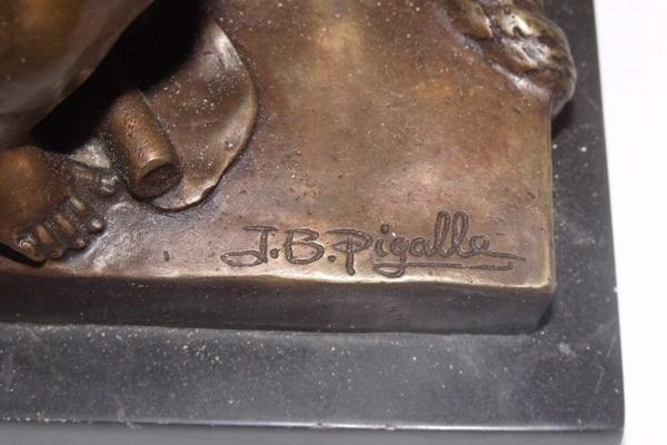 Signed Bronze statue by J B Pigalle. 12.5" H, 9.75" W, 6.75" D