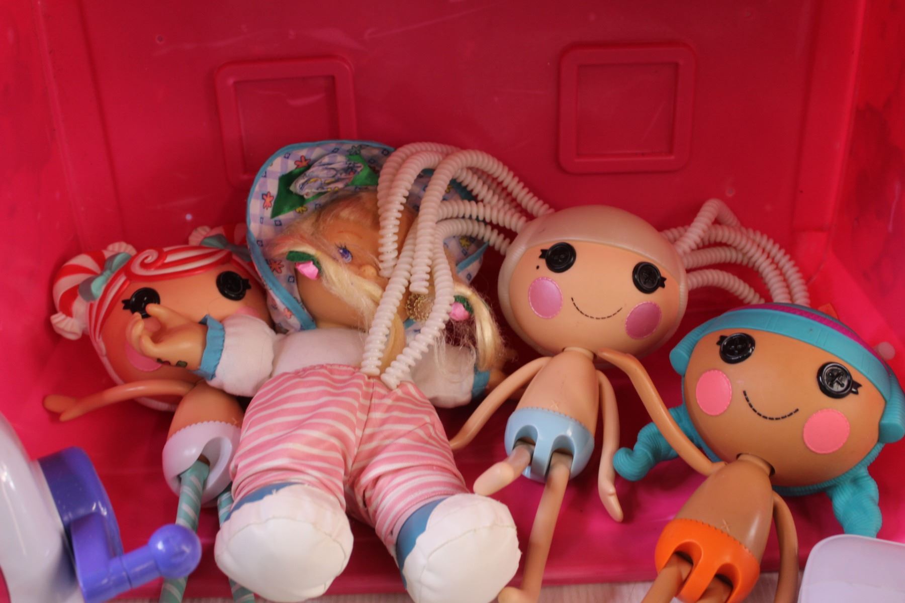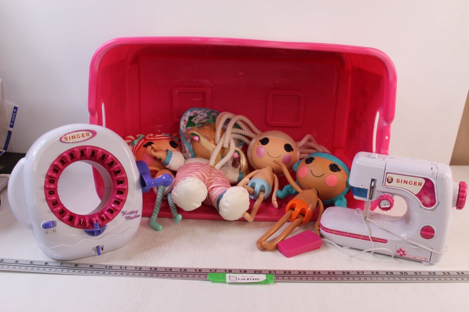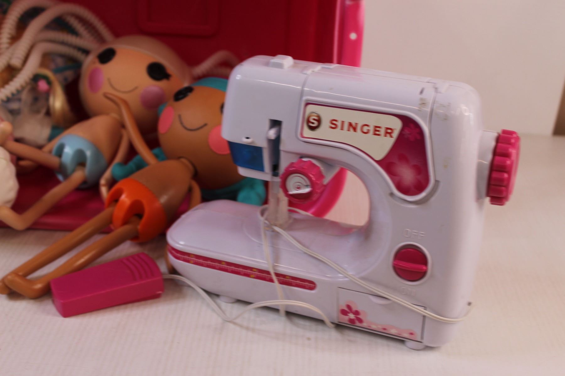 Kids Singer Sewing Machine (Untested), Singer Knitting Machine (Untested), LalaLoopsy in Mega Blocks Bucket