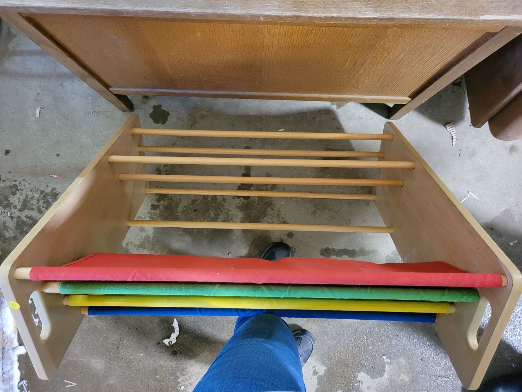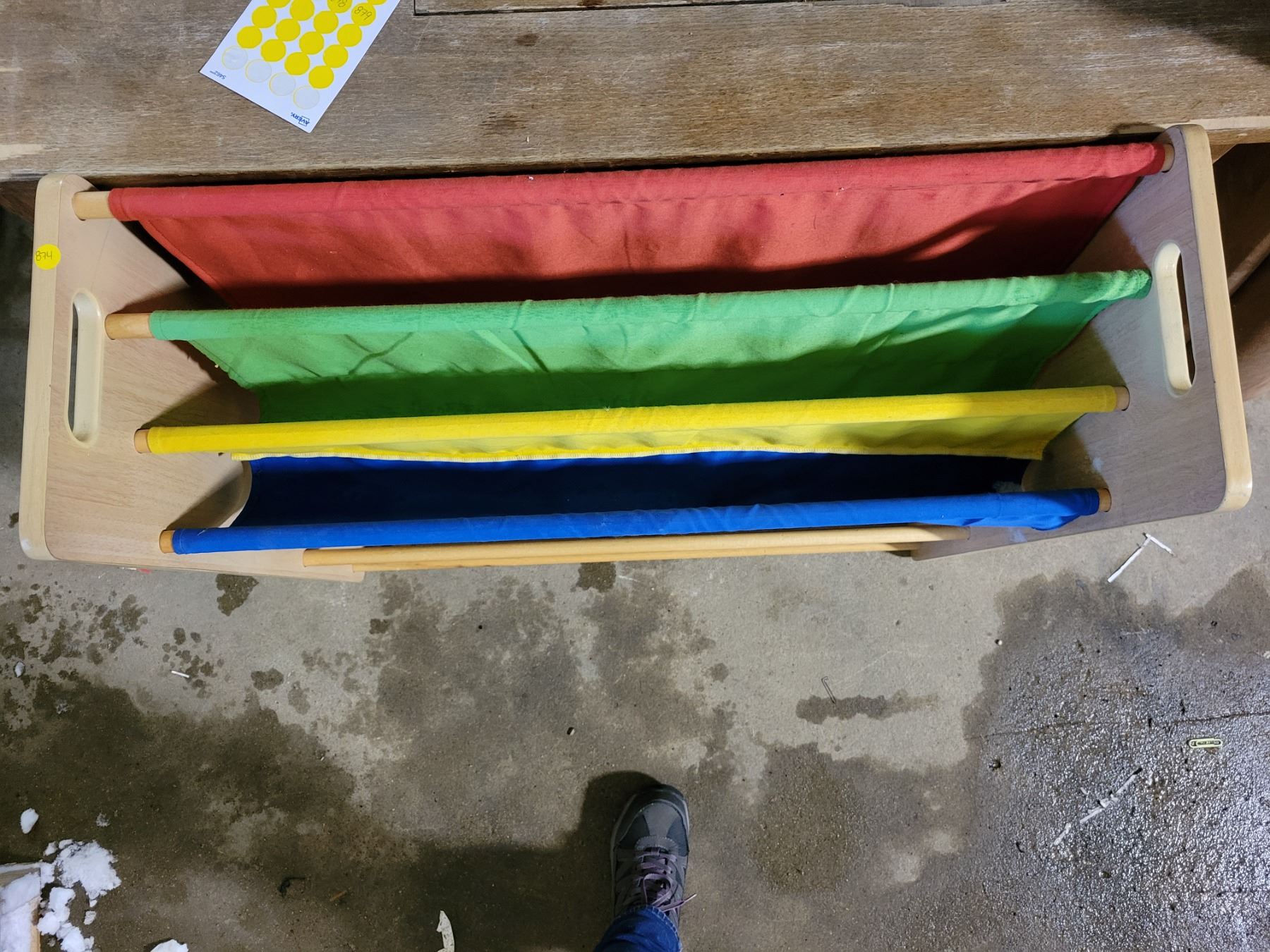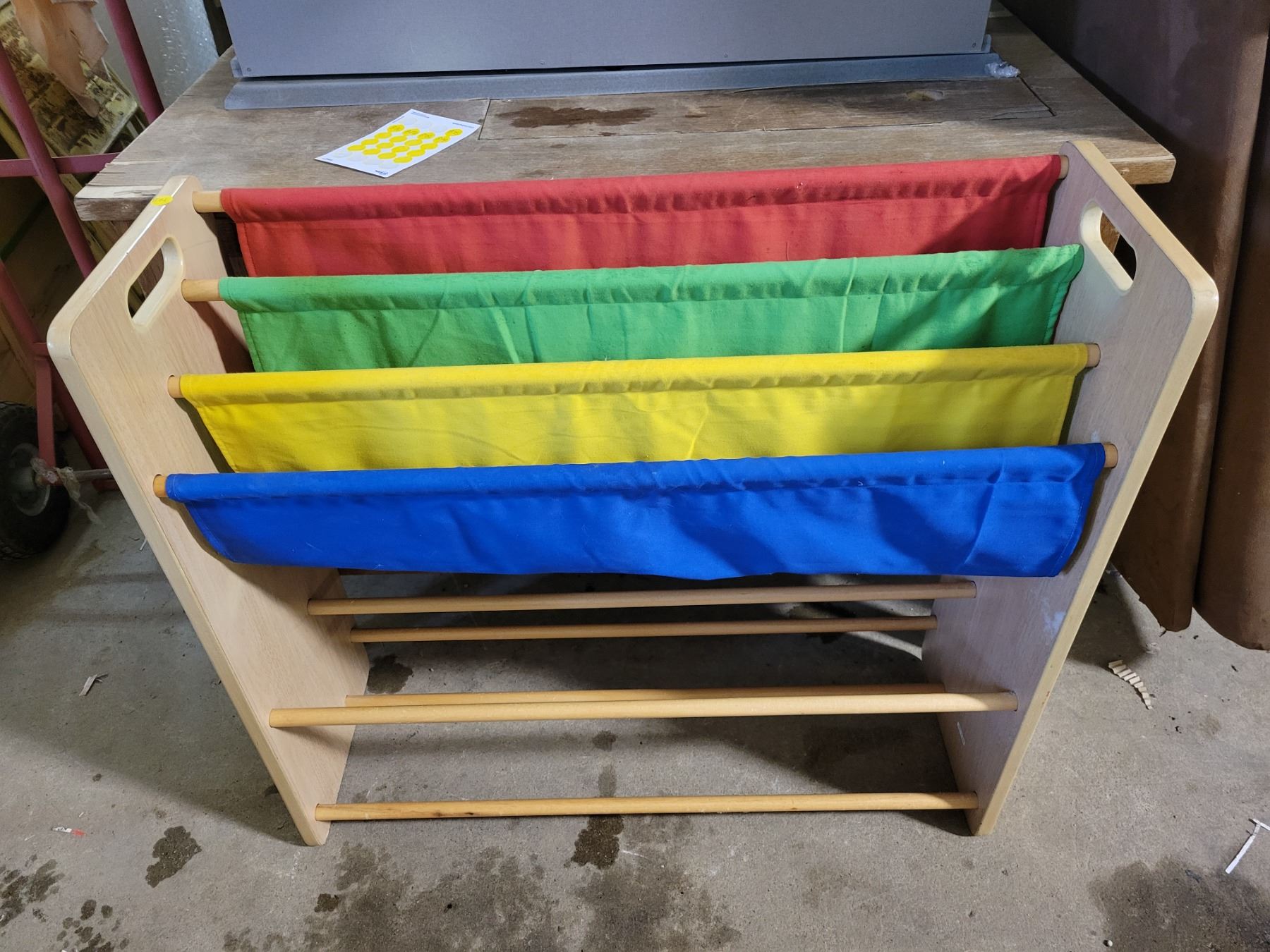 Kids bookshelf with room for storage bins on bottom 34" Wide, 30" tall