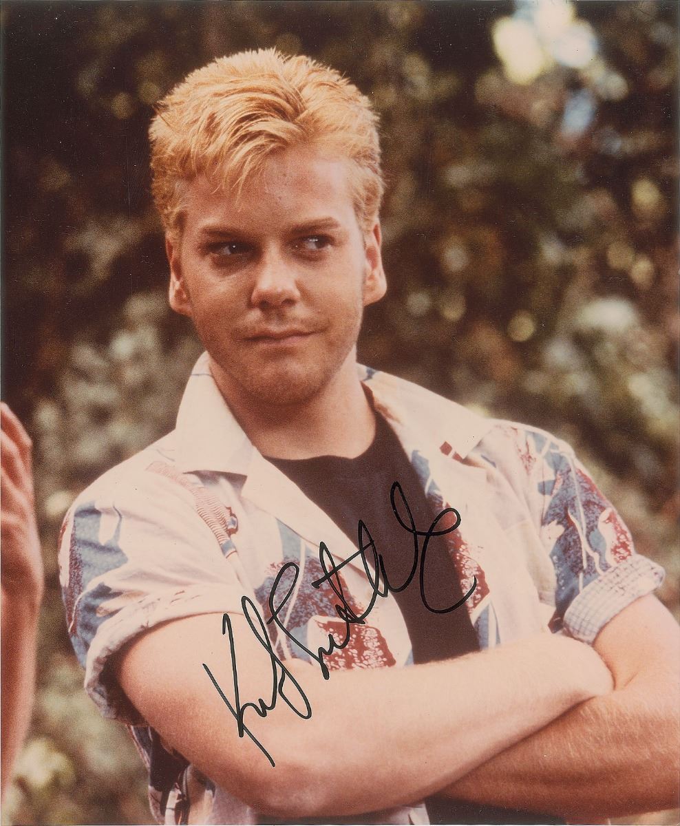 Awesome color glossy 8 x 9.75 photo of Sutherland as Ace Merrill from the 1986 film Stand by Me, signed in black felt tip. In fine condition.
