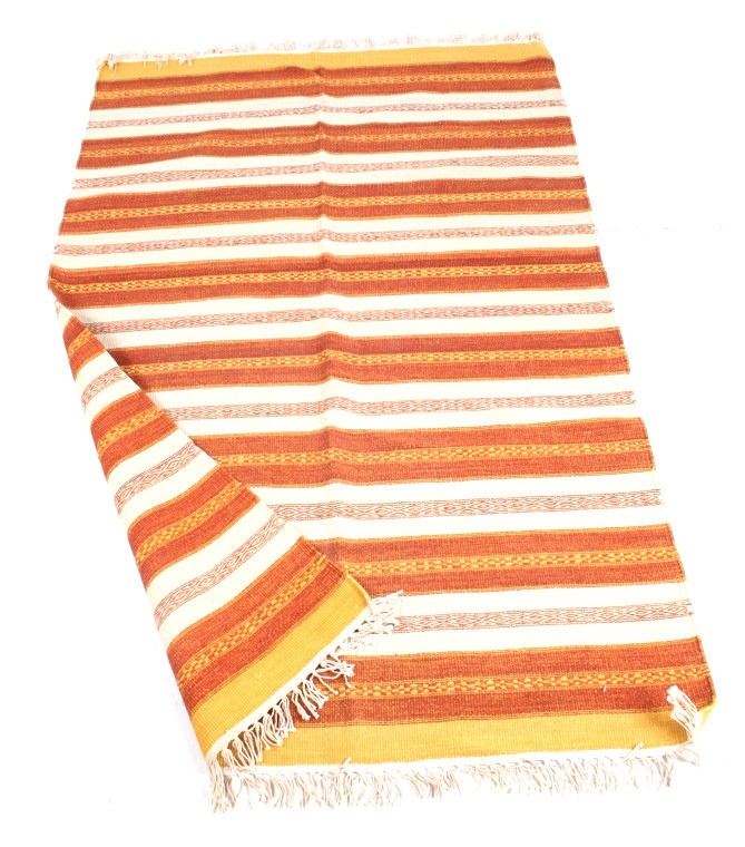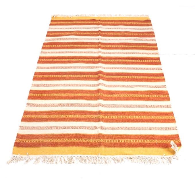 This is a hand knotted Oriental wool Kilim, a word of Turkish origin, denotes a pile less textile of many uses produced by one of several flat weaving techniques that have a common or closely related heritage and are practiced in the geographical area that includes parts of Turkey (Anatolia and Thrace), North Africa, the Balkans, the Caucasus, Iran, Afghanistan, Pakistan, Central Asia and China. This kilim features a borderless design and is wool. The piece is in good condition for its age. Measures: 49" W x 69" L