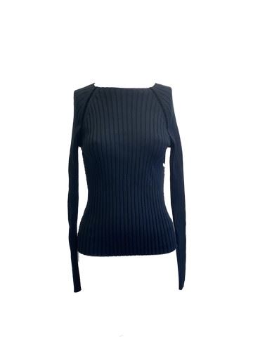 Kill Bill: Vol. 1 (2003) - Vernita Green (Vivica A. Fox) stunt, stretchy black knit sweater. Production made ripped hole in the back collar.