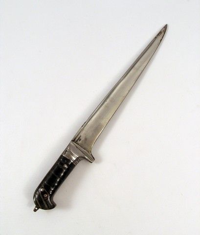 In "Kill Bill: Vol #2" (2004), The Bride (Uma Thurman) finally gets revenge for her ex-boss and ex-lover Bill (David Carradine). This is an unusual solid one piece solid metal blade-hilt-handle knife from the production. (Approx. 16" long).