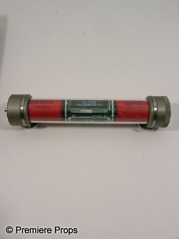 From the set of Killers, this is a metal with magnet bottom, clear hard plastic casing with red 'Danger Semtex-A' and 'Altitude' on paper inside, fake bomb with black neoprene tube for the bomb. (approx. 15" long)