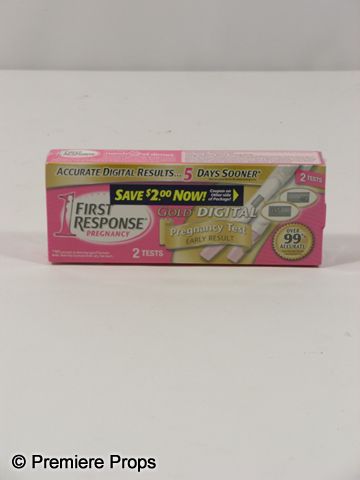 Jen Kornfeldt (Katherine Heigl) screen worn, hero, pink and gold cardboard 'First Response Pregnancy' test. (approx. 7 1/2" x 3")