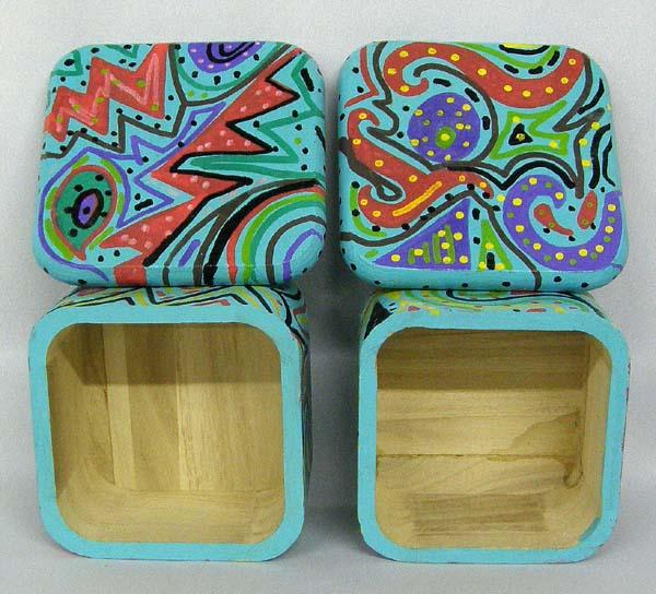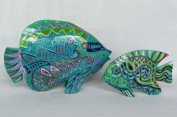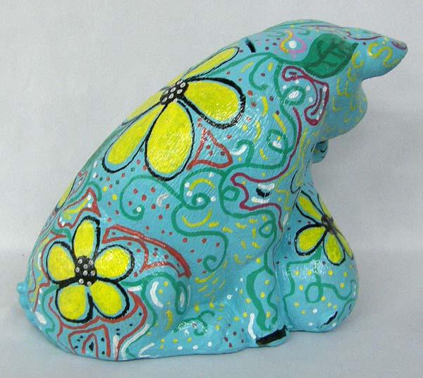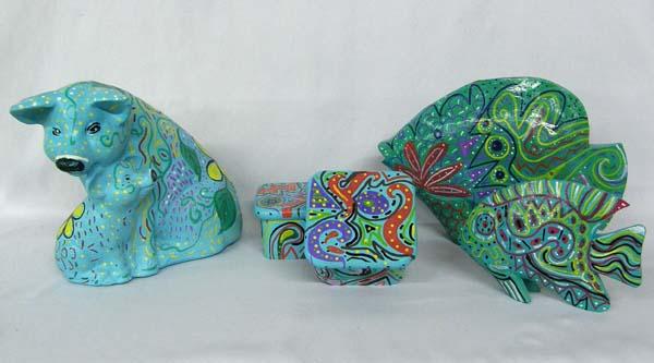 Hand Painted Ceramic Piggy Bank, 2 Wooden Fish and 2 Wooden Boxes. Painted by Kills Thunder. The pig measures approx. 9.5''Hx11.5''Lx6.75''W. Buyers Pay Actual Shipping and Handling Charges(see terms and conditions for more information).