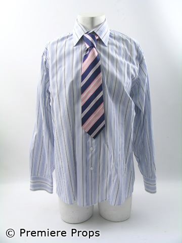 Wayne's (Thomas Jane) screen worn navy wool with pale blue pinstripe "Hugo Boss" 2 button 2 piece suit, white with blue and navy stripes cotton "Kenneth Cole" long sleeve button up shirt (size 16.5), and navy with pink and blue stripes "Mantles" neck tie.