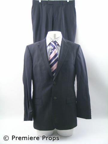 Wayne's (Thomas Jane) screen worn navy wool with pale blue pinstripe "Hugo Boss" 2 button 2 piece suit, white with blue and navy stripes cotton "Kenneth Cole" long sleeve button up shirt (size 16.5), and navy with pink and blue stripes "Mantles" neck tie.
