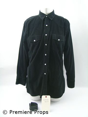 Yesterday she was a witness. Today she's a target. Direct from the set of Killshot, this is Blackbird's (Mickey Rourke) screen worn black corduroy with round silver and greyish white pearl snaps "White Horse" long sleeve button up shirt (size L), grey cotton "Stanfield's" long sleeve crew neck thermal shirt (size L), and black leather cuff bracelet. Includes digial copy of the wardrobe tag.