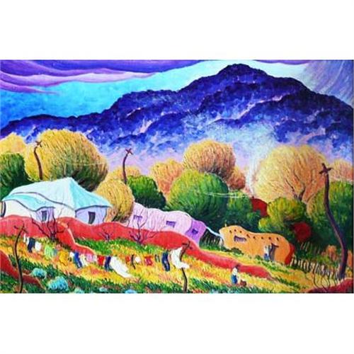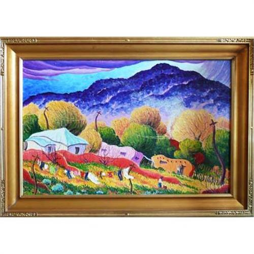 Kim Douglas Wiggins (1960-) "Santa Fe Wash Day" 1990 Oil on Canvas Signed lower right 24" x 36"