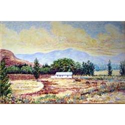 Kim D. Wiggins (b.1960). Oil on canvas. "September Light". One of the most highly collectible artists in New Mexico. 24" x 36". Estimate $4,000-$5,000.