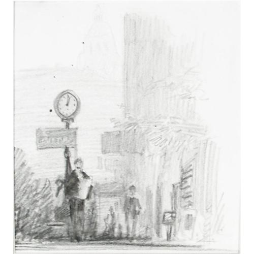 Kim English (b.1957) Ink Wash, Reading Paper, Man Seated, sight size 7 3/4" x 6 7/8", unsigned