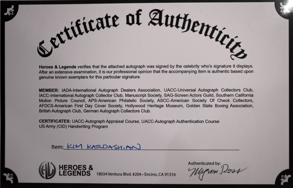 Kim Kardashian signed photo. 11x14 inches. GFA Authenticated. HL15141