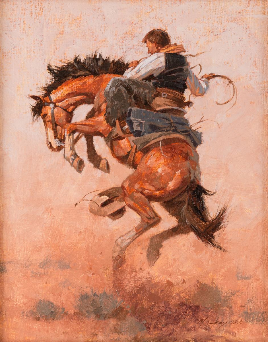 Kim Mackey (1953 - )(OPA)(AAI). Battle Ground. 14" x 11" oil on canvas. Signed lower right, OPA. Verso: Titled and signed OPA, AAI.