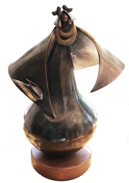 Ca. 1991, Graceful limited edition (#3/30) bronze sculpture of a Hopi robed woman. Excellent condition. 15" x 10" x 8"